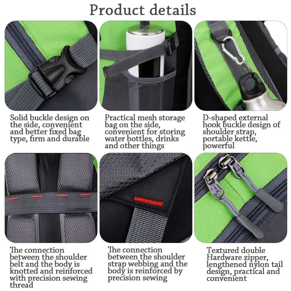 Dieser vielseitige 40L-Rucksack besteht aus strapazierfähigem, wasserdichtem Nylon und Polyester – ideal für Outdoor-Aktivitäten bei jedem Wetter.