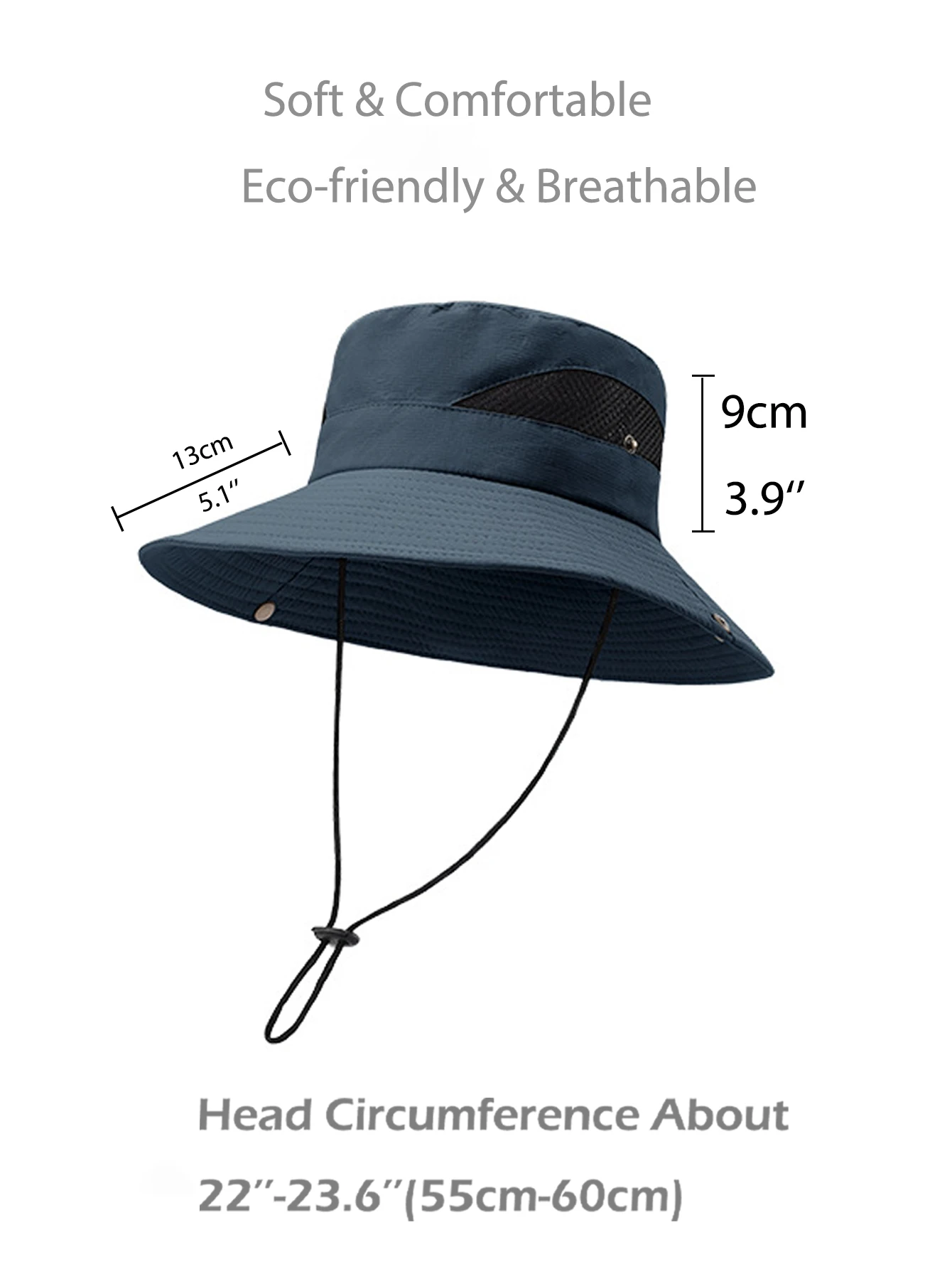 Dank verstellbarem Kordelzug bleibt der Hut auch bei Wind sicher auf dem Kopf.